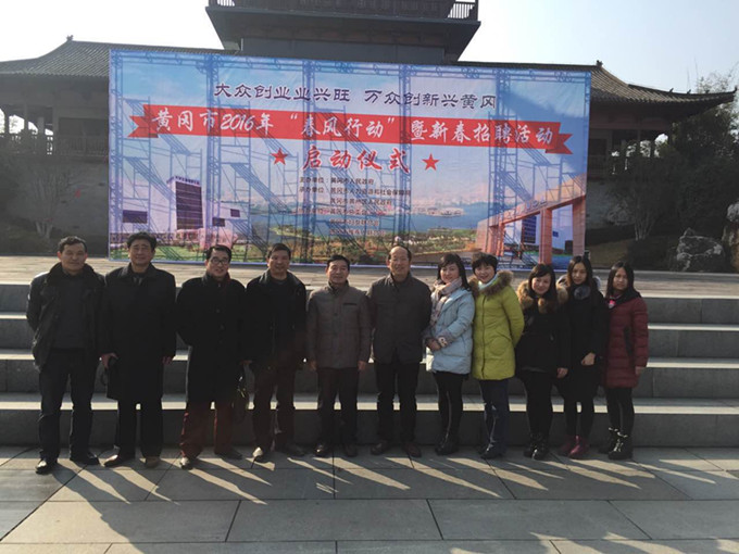 2月3日,黄冈市2016年“春风行动”暨新春招聘会启动仪式隆重开幕。武穴人社局副局长劳动就业局葛局长、李局长,就业办周主任、陶主任一行亲率本市重点企业招聘队伍参加本次招聘会。